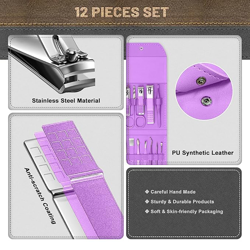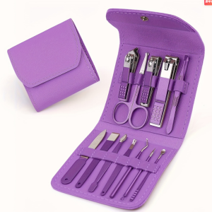 • [All-in-One Grooming] Includes 12 essential tools for hand, foot, and facial care, all housed in a stylish purple travel-friendly case.