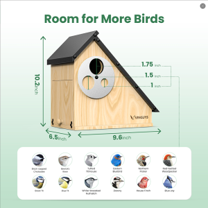 [Premium Natural Wood] Crafted from high-quality natural wood with smooth finishes, measuring 10.2″H x 9.6″W x 6.5″D to provide ample space for growing avian families.