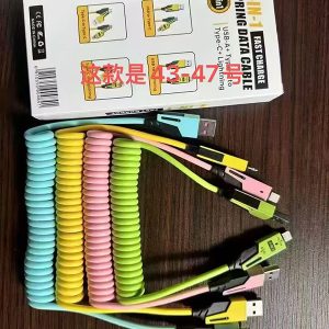 4-in-1 Retractable Spring Data Cable – Fast Charging Multi-USB Cord for Type-C, Lightning, USB-A – Wholesale Liquidation Deal.