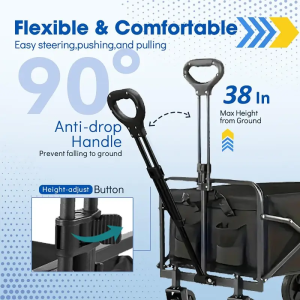 Durable and Convenient Design: Crafted from robust 600D fabric with a protective PVC coating, this wagon cart is waterproof and resistant to tears, even when carrying sharp objects. Its collapsible frame, constructed from thickened steel with an anti-oxidation and corrosion-resistant finish, ensures longevity and fade resistance for prolonged outdoor use.