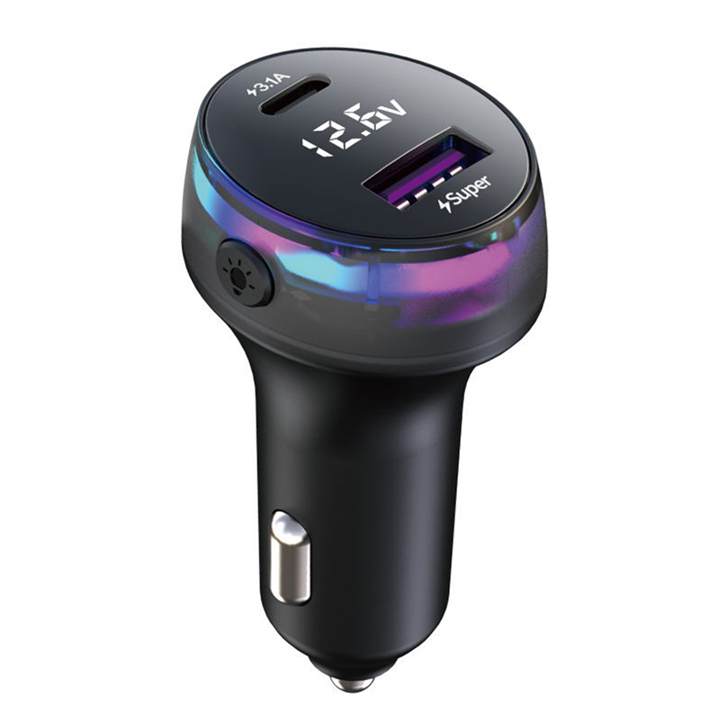 Car Charger Fast Charge with 12.6V LED Voltage Display, Dual Port PD 3.1A USB-C & Super USB Adapter, RGB Colorful Breathing Light, Compatible with iPhone 15/14/13, Samsung, iPad, Black