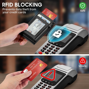 • 【RFID-blockierender Schutz】Die RFID-Geldbörse für Herren ist mit einer integrierten Abschirmschicht ausgestattet, um zu verhindern, dass unbekannte Geräte Ihre Kreditkarten, EC-Karten und Führerscheine scannen
