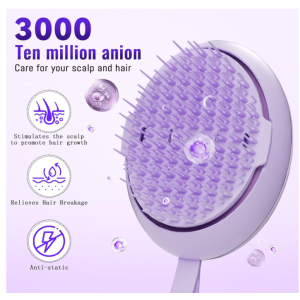 - Massager with negative ion function It may penetrate and moisturize the hair, Enhances hair softness and shine. It can also neutralize the static electricity on the surface of the hair, making the hair smoother and softer. Reduce the production of dandruff and keep hair in healthy condition.