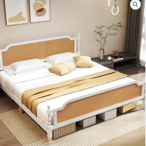 【Extra Large Storage Space】Rattan bed frame queen size is 9 inches above the ground, allowing for storage boxes to be placed underneath, increasing the utilization of your space. Even a robot vacuum can easily pass through, making house cleaning convenient and keeping the indoor environment tidy and fresh.