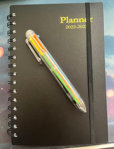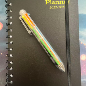 Weekly & Monthly Planner with 6-in-1 Multi-Color Retractable Pen, A5 Spiral Bound Hardcover Academic Diary with Elastic Band & Inner Pocket, for Office, School & Journaling.