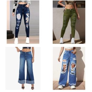 Women’s Trendy Denim Collection – Includes Skinny, Ripped, Wide Leg Jeans & Skirts